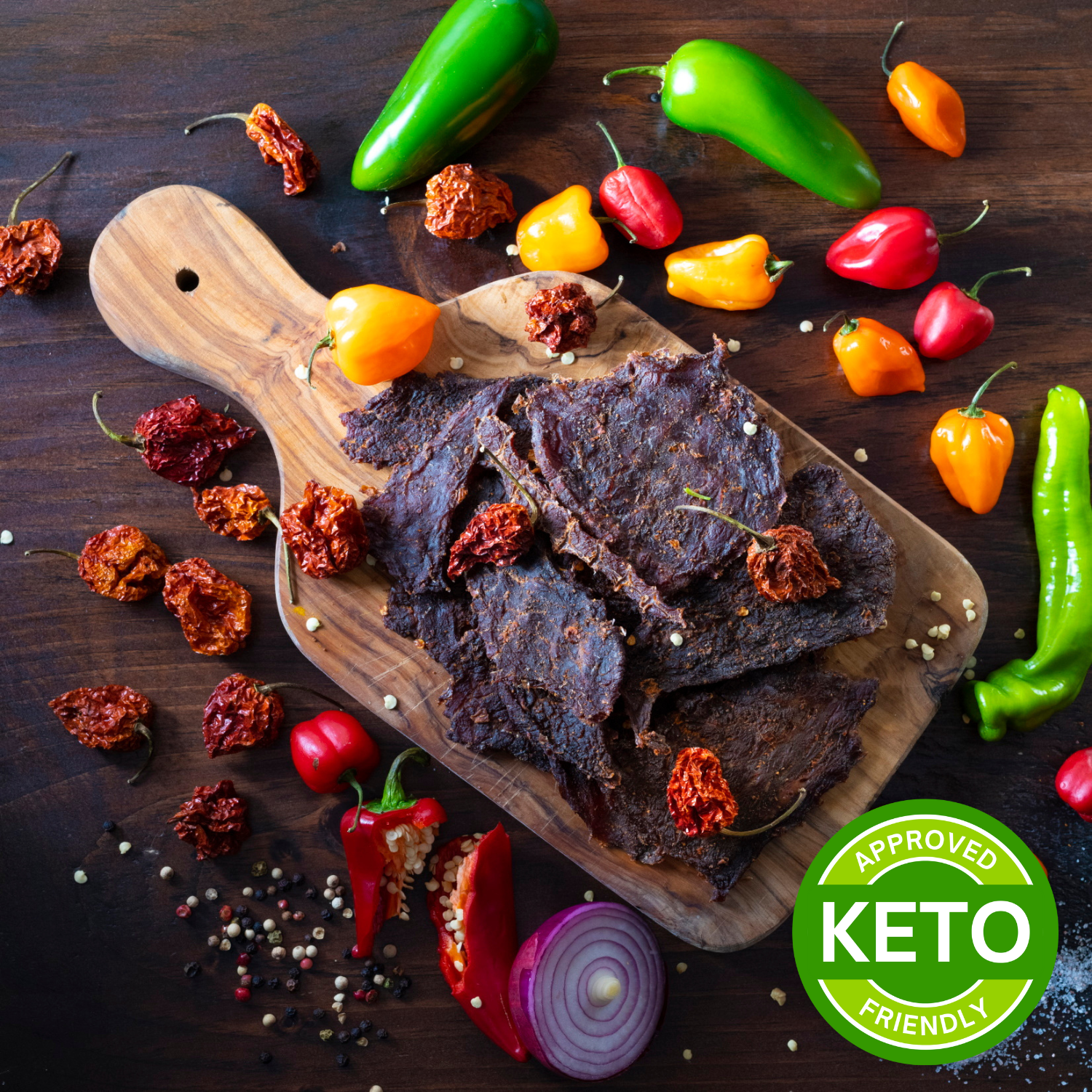 But it’s more than just a fiery snack—it’s a guilt-free indulgence. High in protein and made with low-carb, keto-friendly ingredients, this jerky meets the needs of health-conscious individuals looking for a satisfying treat without compromising on nutrition. It’s perfect for fueling your active lifestyle, whether you’re tackling a long workday, hiking a rugged trail, or simply seeking a bold pick-me-up.